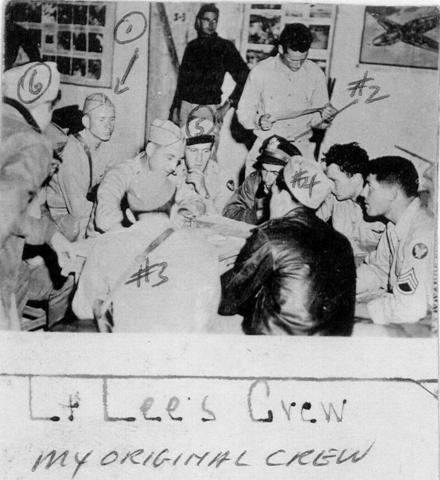 1) Lt. Bill Lee, Pilot; 2) Lt. Ray Farquhar, Navigator; 3) Sgt. Dempsey;